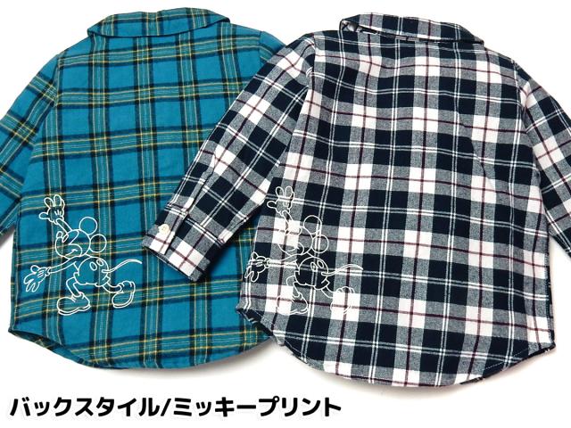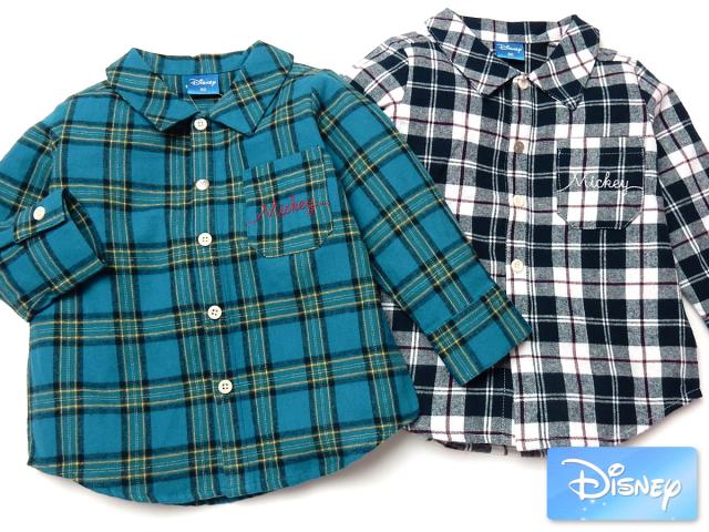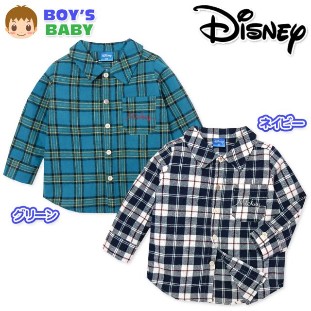 【送料無料】男児 ベビー 長袖 シャツ Disney/ディズニー ビエラ 綿100% チェック ミッキー ベビー服 男の子 iw-0030【メール便対応】