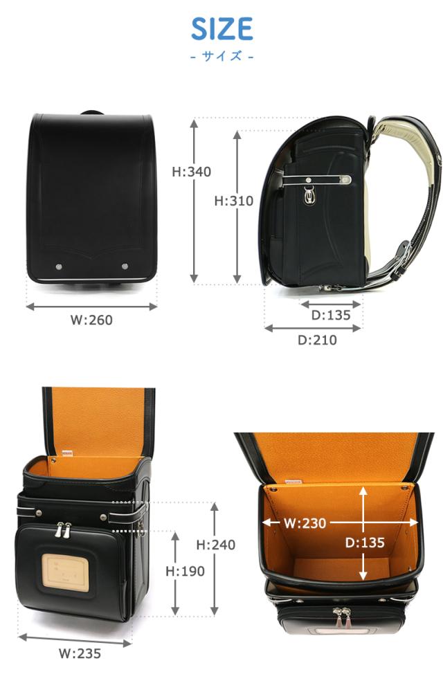 | 仕様 | 内側:ジップポケット(M)×1、ポケット(L)×1、ポケット(M)×1 付属品:キッズアミバッグ、ランドセルカバー、しわけジョーズ、時間割、連絡袋、ネームカード、メーカー保証書 |