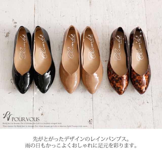 ポインテッドトゥレインパンプス【432201828】20代・30代・40代・50代 レインパンプス・痛くない・パンプス・ローヒール・レインシューズ・防水・梅雨・雨・兼用・デザインヒール・フォーマル・大きいサイズなど・即日発送・送料無料・結婚式・婚活・披露宴・顔合わせ・二次会・同窓会・お呼ばれ・食事会・謝恩会・シューズ・七五三・お宮参り・冠婚葬祭・弔事・女子会・デート・入学式・卒業式・入園式・卒園式・ママ・マタニティー・セレモニー・セレブ・パーティー