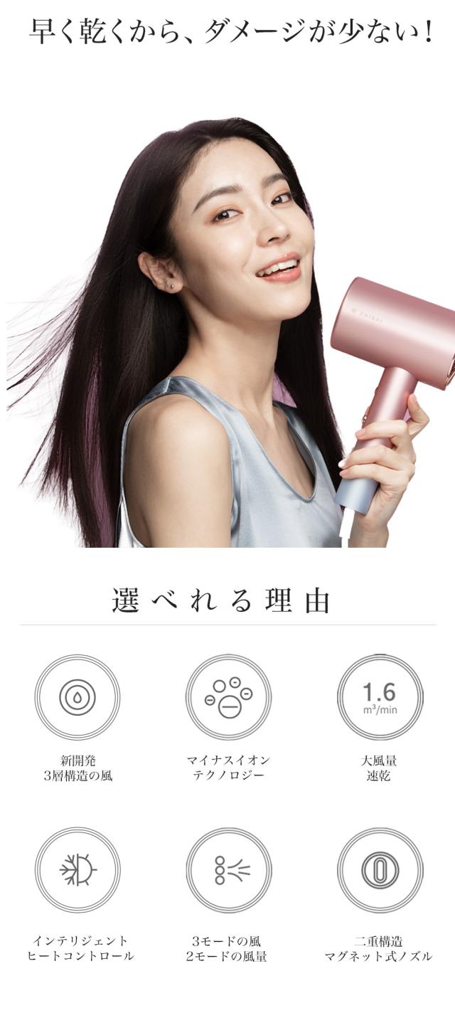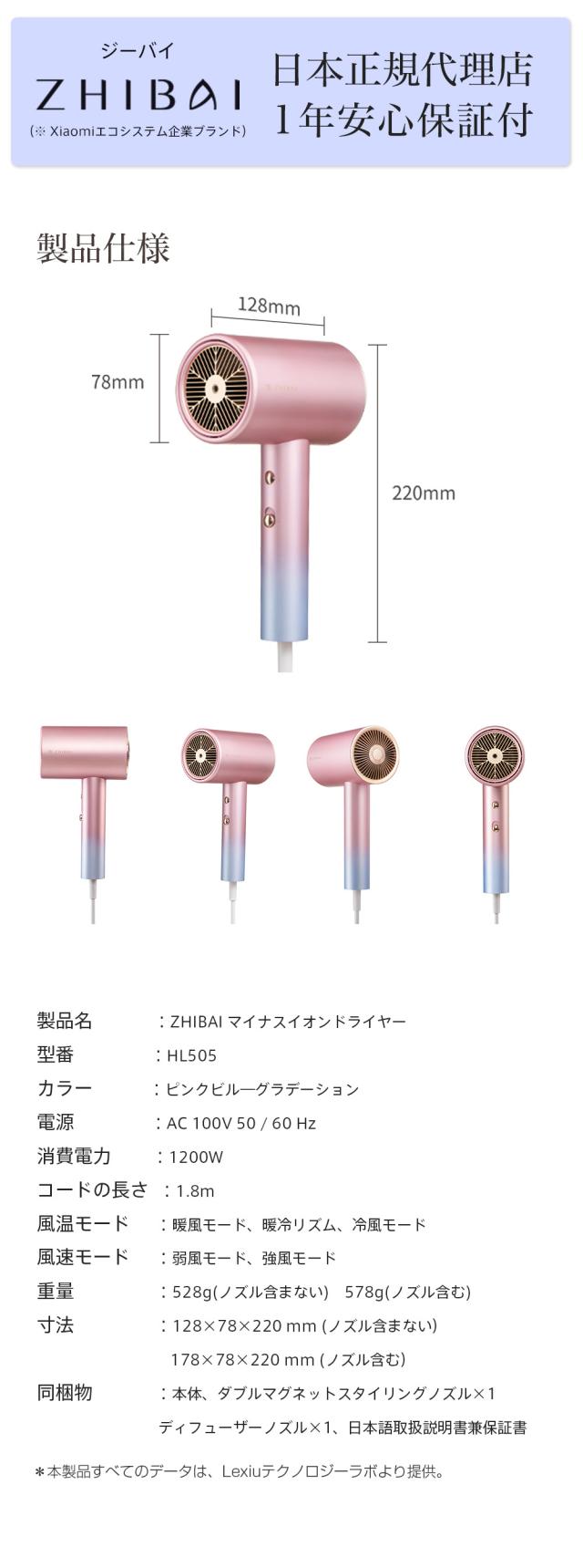 【年末年始・赤字覚悟の大特価 35%お得(15%OFF+20%ポイント)】 ZHIBAI 大風量 ヘアドライヤー マイナス イオン ヘア ドライヤー ZHIBAI ( Xiaomi グループ企業) HL505 大風量 速乾 温冷リズム ターボ 収納 国内正規代理店 1年保証