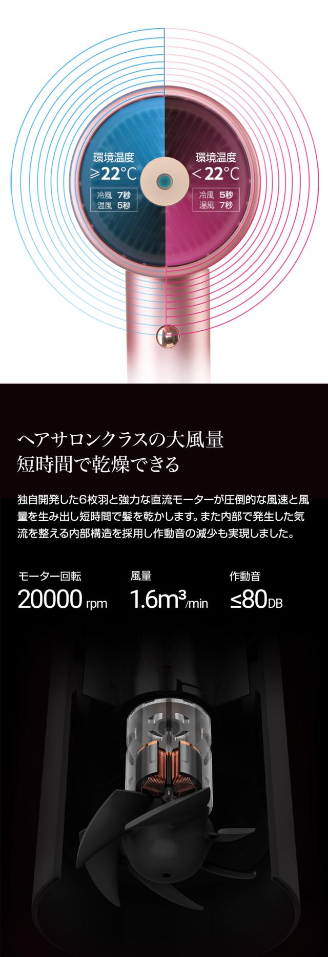 ・マグネット式ヘアディフューザー付属で、パーマが崩れることなくスピーディーに乾燥