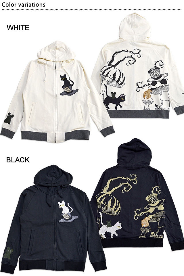 不思議の国のラミアールジップパーカー LIN ALLP-75010 黒猫 ねこ ネコ 刺繍 和柄 和風 スエット