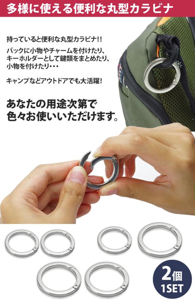 カラビナ 丸型 2個セット サークルカラビナ キーリング 丸カン キーホルダー バッグ チャーム アウトドア 鍵