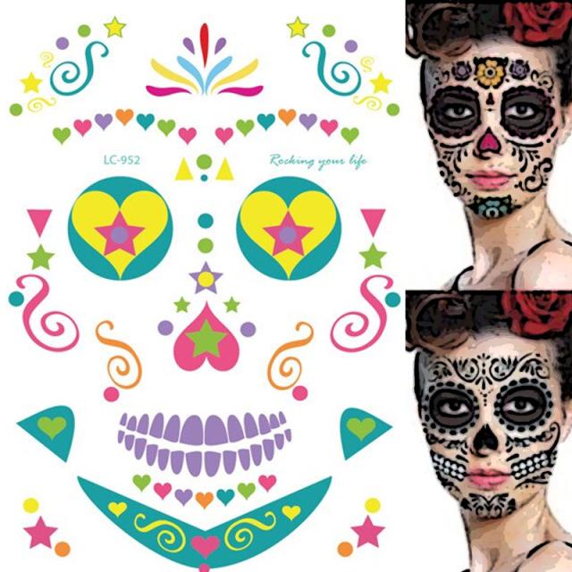 フェイスタトゥシール 1個販売 タトゥー メンズ レディース 仮装 変装 入れ墨 ステッカー 面白い 大人 ホラー 祭り お化け屋敷 ゾンビ 死人 特殊メイク SNS 映え 人気 流行 メイク 化粧 カラフル ハート 星 スター ドクロ がい骨 スカル ガイコツ 面白い オモシロ