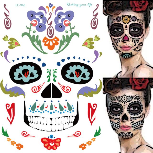 フェイスタトゥシール 1個販売 タトゥー メンズ レディース 仮装 変装 入れ墨 ステッカー 面白い 大人 ホラー 祭り お化け屋敷 ゾンビ 死人 特殊メイク 映え 人気 流行 メイク 化粧 カラフル 花 フラワー 魔人 魔神 可愛い おもしい ドクロ がい骨 スカル ガイコツ ハート