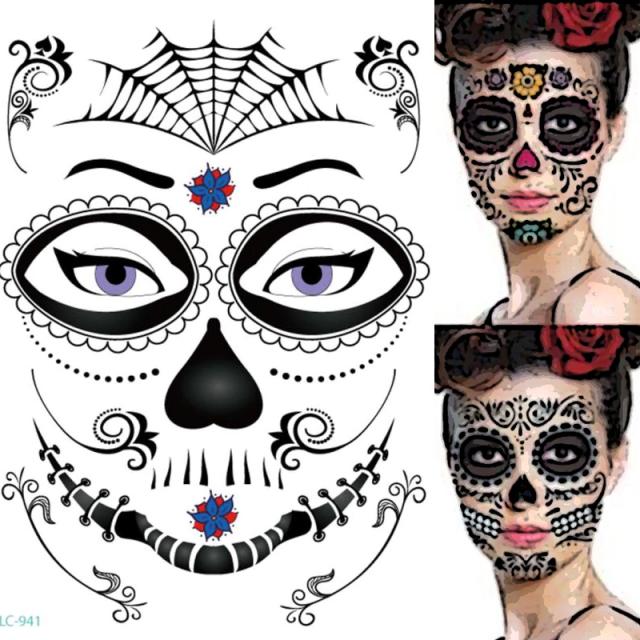 黒色ブラックをメインカラーに、お花や傷をデザインした不気味なスカルをモチーフにしたカーニバル色の強い仮装用ステッカー。