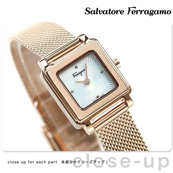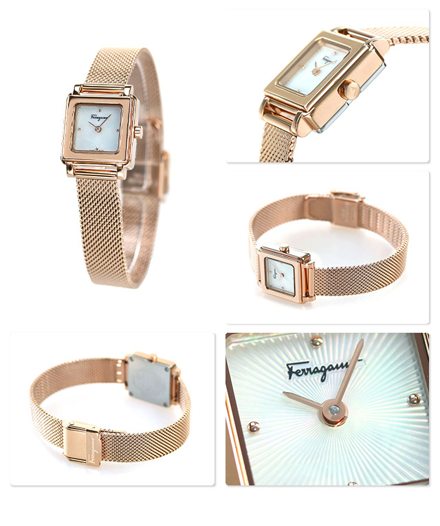 サルヴァトーレ・フェラガモ スクエア クオーツ レディース 腕時計 SFBY00219 Salvatore Ferragamo ホワイトシェル×ピンクゴールド