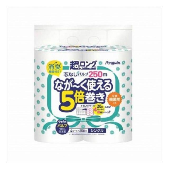 【3個セット】丸富製紙 ペンギン芯なし超ロングトイレットペーパー パルプ250m4RS 日用品 日用消耗品 雑貨品 まとめ セット販売(代引不可