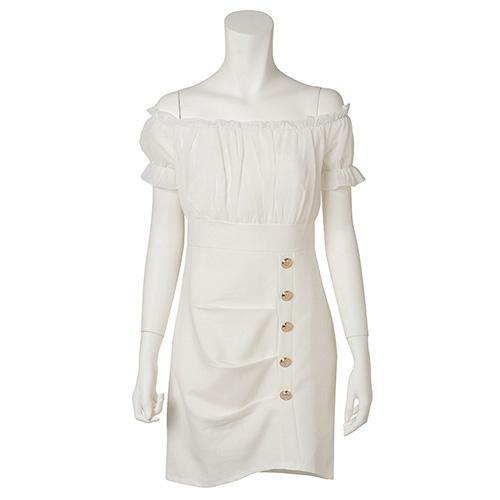 【グラシア】 キャバ ドレス キャバドレス ワンピース ミニドレス ハイウエスト オフショル タイト ラメ ミニ丈 切り替え パフスリーブ 純白 ホワイト S M L XL