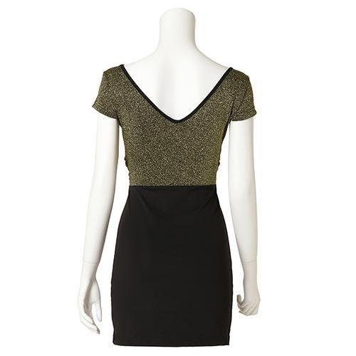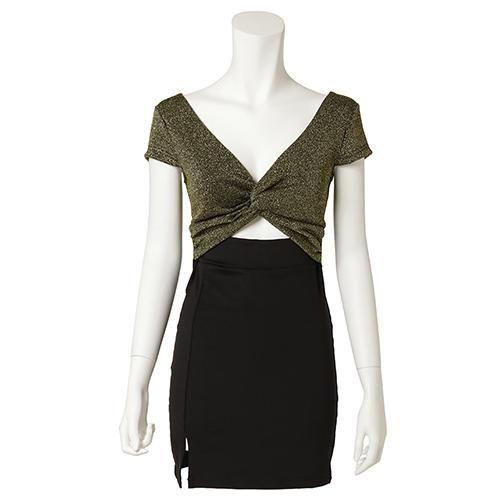 【グラシア】 キャバ ドレス キャバドレス ワンピース ミニドレス エレガント クロス ストレッチ チラリ ラメ 伸縮性 フロントオープン ゴールド S M L XL