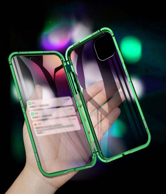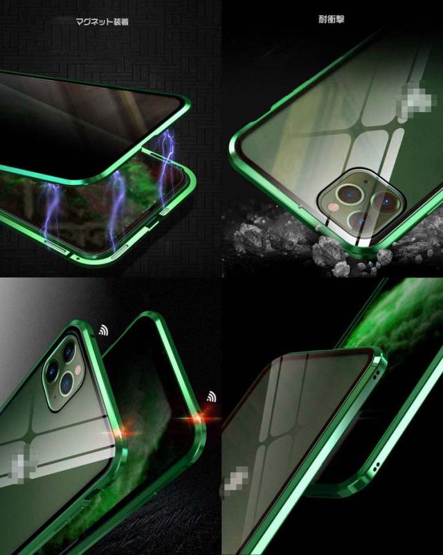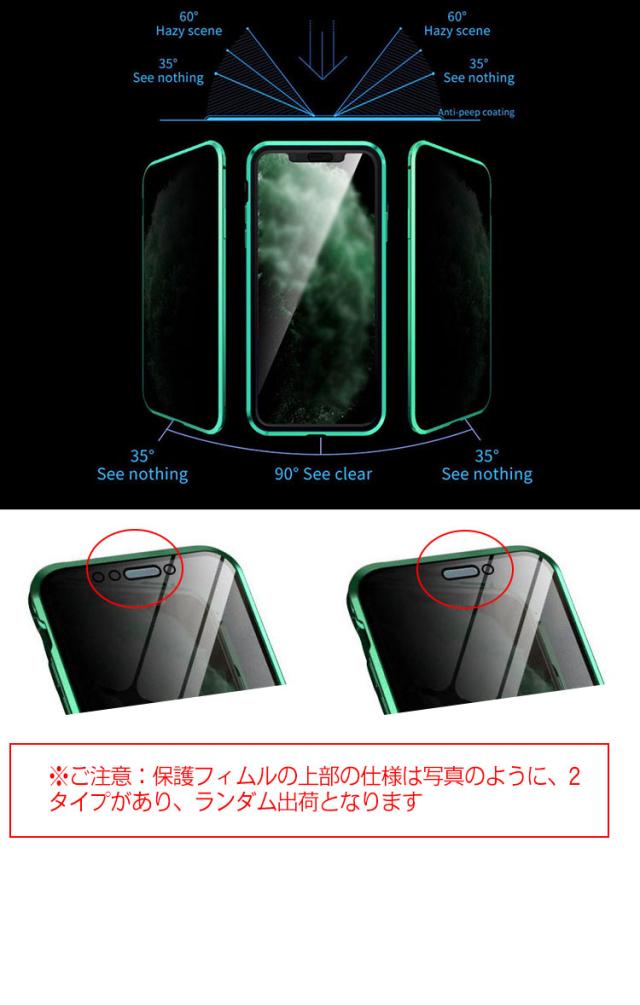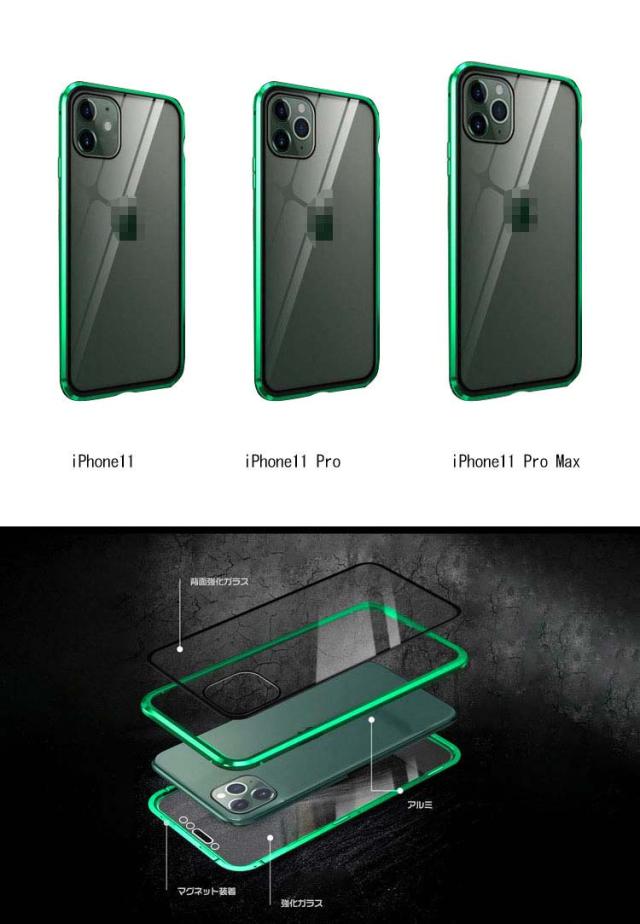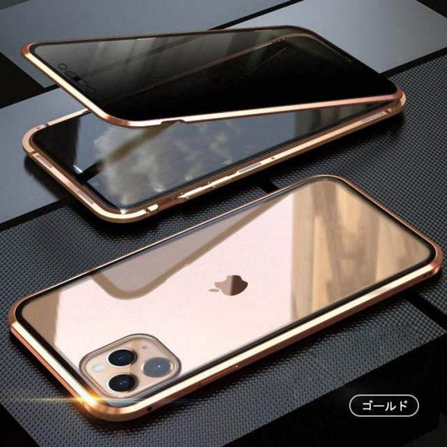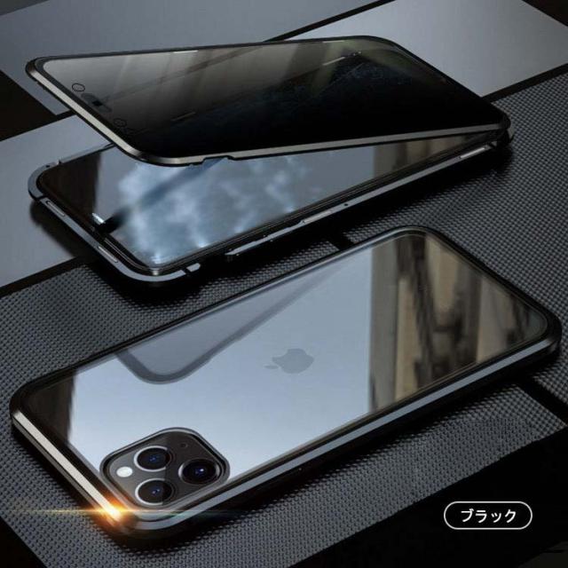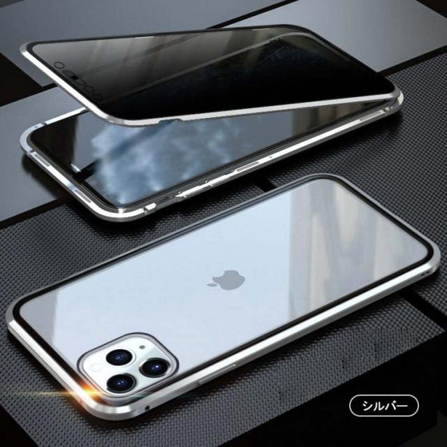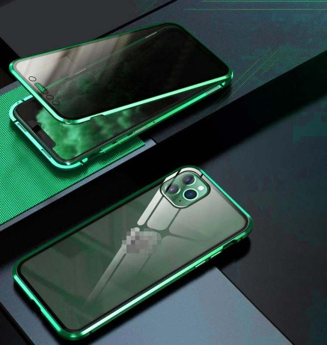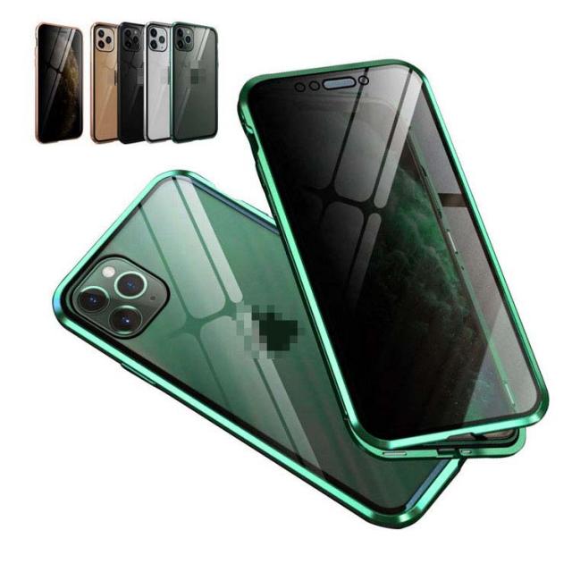 前後ガラス+覗き見防止 iPhone 11/11 Pro/11 Pro Max ケース/カバー アルミ バンパー クリア 透明 両面 前後 ガラス マグネット 背面パネル付き 覗き見防止 アルミサイドバンパー おしゃれ アイフォン11/11プロ/11プロマックス