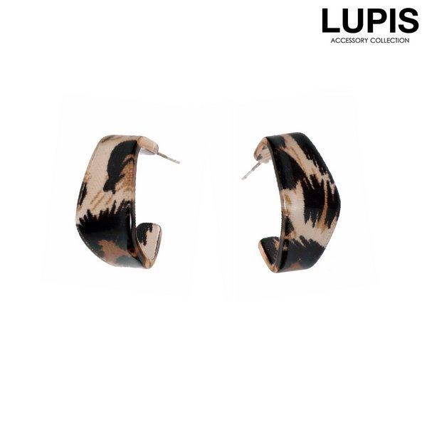 レオパード柄のスクエアフープピアス。