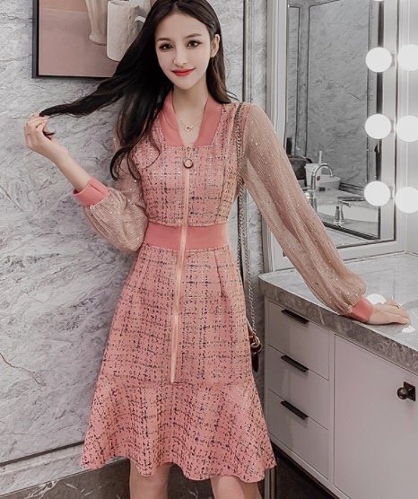 ミニワンピース Aライン 大きいサイズ ゆったり ショート丈 長袖 春秋 お出かけ パーティー 結婚式 二次会 ピンク グレー チェック柄 Vネック 大人可愛い きれいめ 上品 デート 女子会 OL トレンド 10代 20代 30代