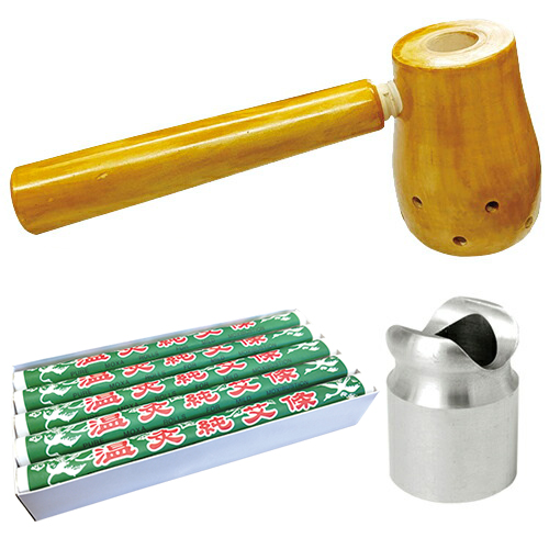 | 使用方法 | 1.片手でフードを固定し、もう一方の手で柄を回転させて暖めます。 2.外側の紙を剥いだ棒灸を、フード上方から差し込み着火します。 3.棒灸を適度な位置に移動し、柄を回転させ棒灸を固定します。 4.棒灸が固定されていることを確認してからご使用ください。 5.使用後は棒灸を外し、棒灸消しなどで火を消してください。 |
