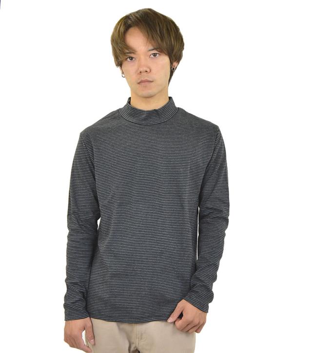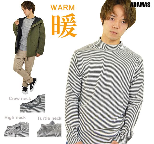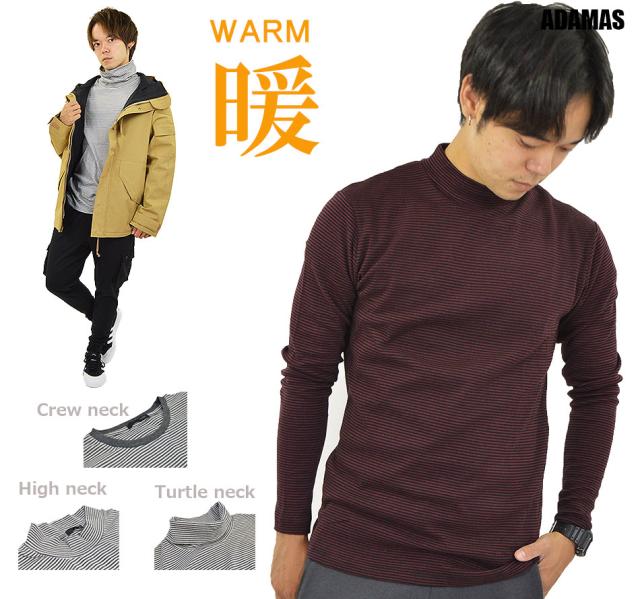 暖 Tシャツ メンズ タートルネック ハイネック モックネック クルーネック 長袖 ボーダー ボーダーロンT ストレッチ 生地 秋冬 あったか 保温 ヒート インナー ウォーム 下着 メール便送料無料(※代引き除く)冬 秋 春 新作