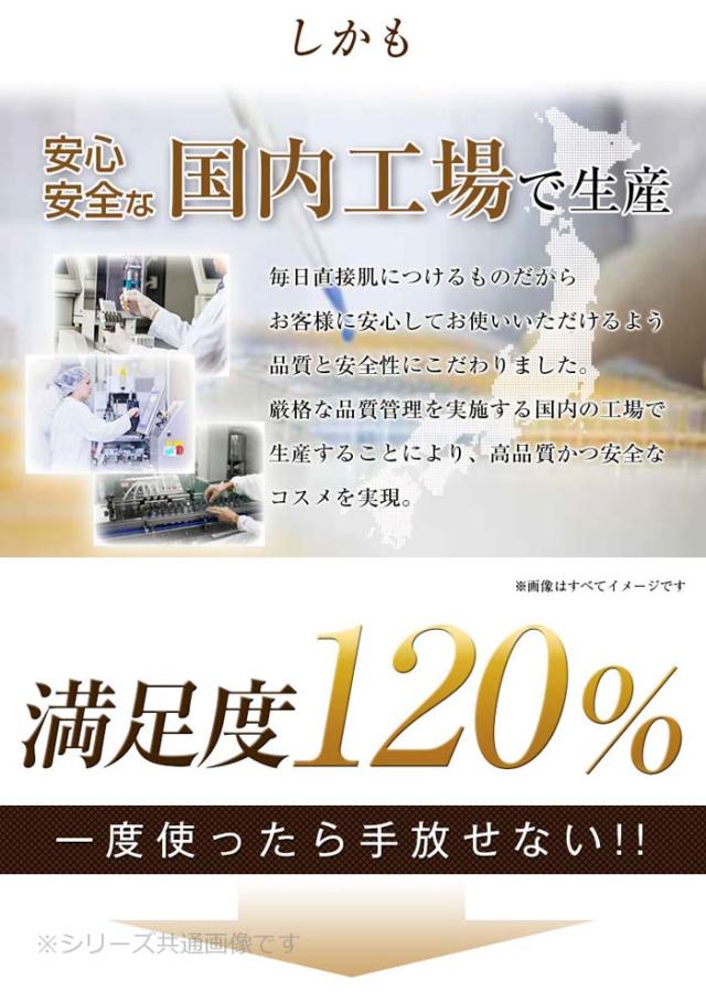 | 特長 | 15種類の天然植物エキスと馬プラセンタエキス、サイタイエキス(保湿成分)を含む6種類の美容液成分を贅沢に配合しました。 |