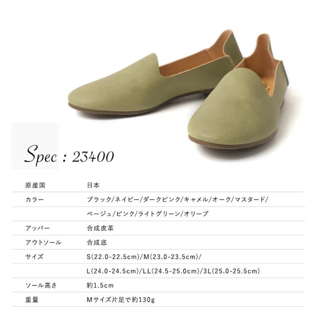 【送料無料】日本製 軽量 かかとが踏める カジュアルシューズ レディース 歩きやすい バブーシュ レディース ブラック ぺたんこ パンプス 大きいサイズ ローヒール フラットシューズ ぺたんこ靴 23400