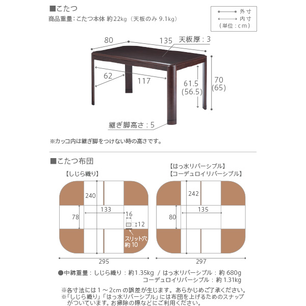 【パワフルヒーター/高さ調節機能付き/2点セット】こたつセット ダイニングこたつ アコード 135x80cm +専用省スペース布団 12色対応 ハイタイプ 本体 石英管 継ぎ脚付き 長方形 こたつ台 シンプル I-1100242