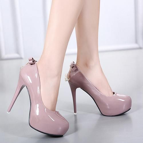 【グラシア】 キャバ ヒール 靴 シューズ ハイヒール12cm パンプス ラウンドトゥ チャーム PU パテントレザー ラバー リボン 愛らしい 華やか 女子力 ブラック ホワイト ピンク