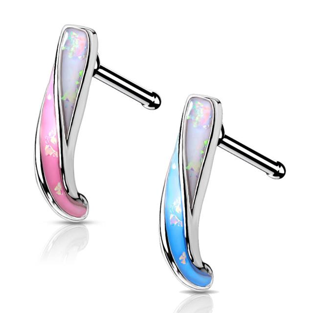 [20g 鼻用 ボディピアス] オパールツイストクローラーノーズスタッド 鼻ピアス 20G 20ゲージ メンズ レディース ノーズピン ノーズピアス ボディーピアス サージカルステンレス316L プレゼント ハナピアス 男性 女性 ブルー 綺麗 青色 水色 ピンク キラキラ 白色 ホワイト