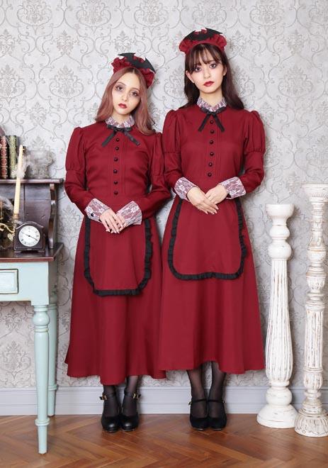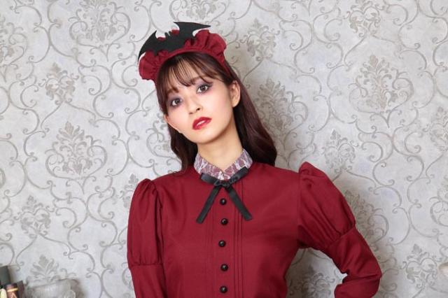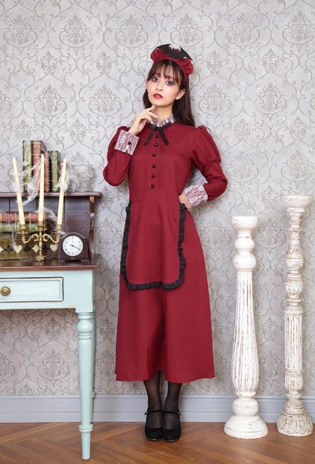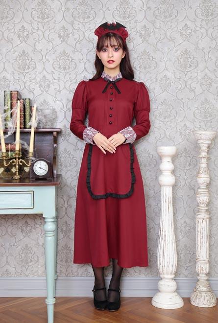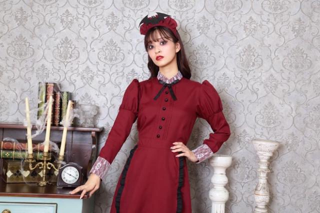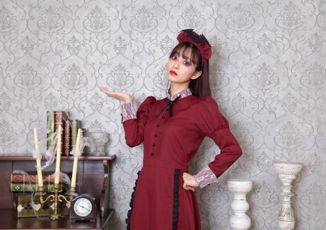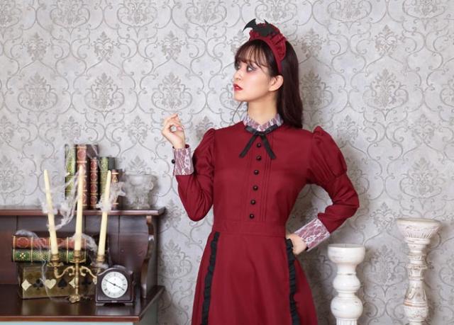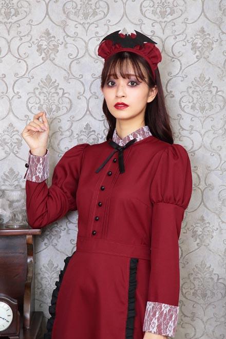 人気の「洋館メイド」コスチュームのエンジカラー。コウモリ付きカチューシャがポイントです。長袖&ロング丈なので防寒効果も!「洋館メイドシリーズ」とペアで着るのもオススメ。