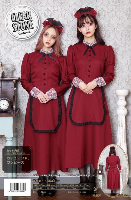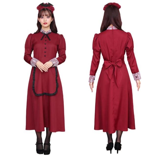 HW 洋館メイド ボルドー クリアストーン コスプレ ハロウィン ハロウィーン 衣装 仮装 ハロウィーン