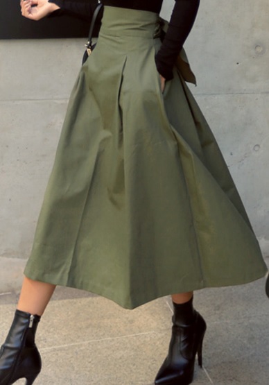 ハイウェストスカート ミモレ丈 ロング丈 無地 グリーン バックリボン ポケット 秋 仕事 大きいサイズ フレア 可愛い シンプル 10代 20代 30代 お出かけ デート 上品 きれいめ 清楚 大人女子 Aライン トレンド