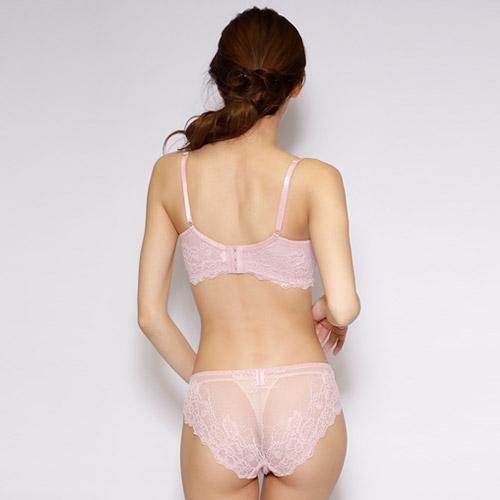 ショーツはヒップが美しく透けるシアーレースで、センシャルなムードをプラス。