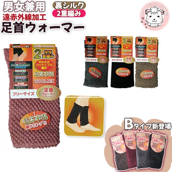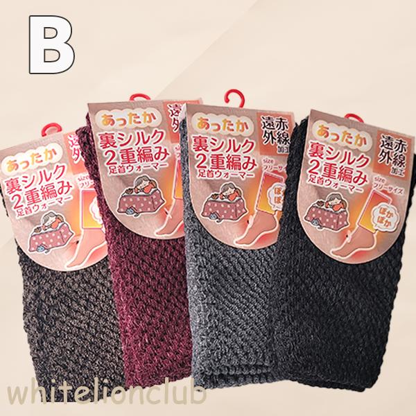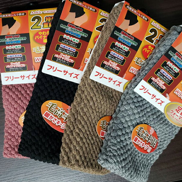 【アウトレット】遠赤外線加工 足首ウォーマー 裏シルク 2重編み パイナップル編 フリーサイズ | レッグウォーマー シルク混 サポーター 防寒 しめつけない