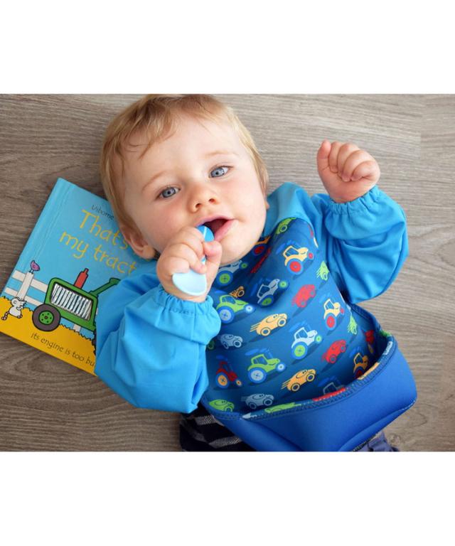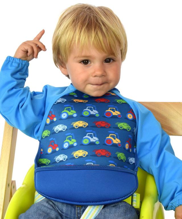 ●ウェットスーツ素材と防水素材でできた、とっても軽くて軟らかい袖付きのベビー用エプロンです。