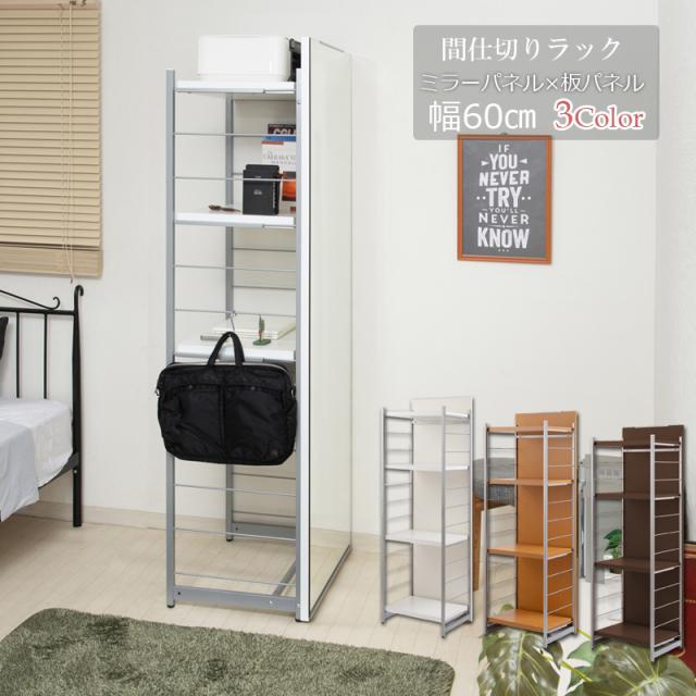 表はミラー・裏面は4段棚 自立式 パーテーション 幅60 4段棚板 ミラー付き 送料無料 間仕切り 壁 収納 棚付き 全身 鏡付き 姿見 大型 自立 棚板 衝立 日本製 事務所 オフィス 壁面収納 オープンラック 連結パーテーション
