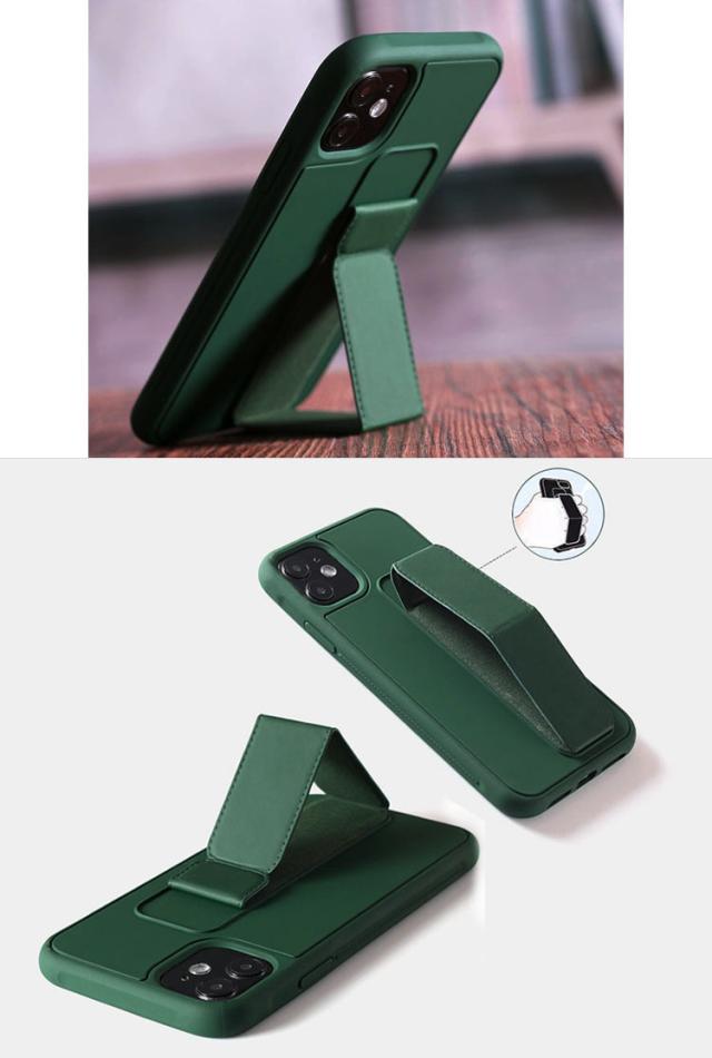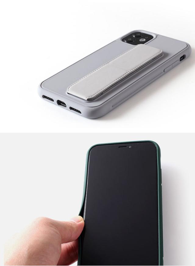Apple iPhone12 / 12 mini / 12 Pro / 12 Pro Max ケース/カバー レザー調 スタンド機能 シンプル 片手持ち 持ち手 ベルト スマホバンド 落下防止ベルト スマホベルト 片手操作 取っ手 保護カバー 耐衝撃ケース おしゃれ アイフォン12 / 12ミニ /12プロ / 12プロマックス スマホ スマートフォンケース/カバー