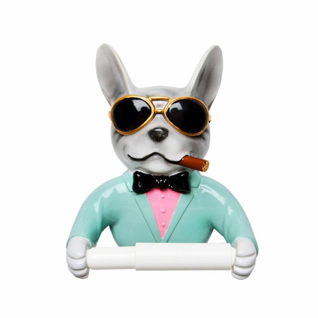 トイレットペーパーホルダー おしゃれ 葉巻をくわえたダンディな犬 フレンチブルドッグ (ホワイト)