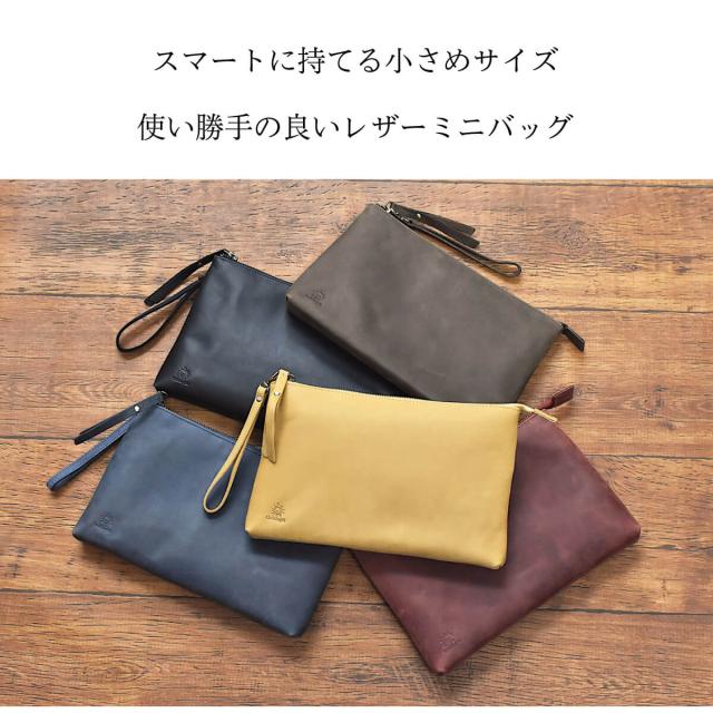 レザーミニバッグ ハンドストラップ付き 本革 クラッチバッグ レザー ハンドバッグ 鞄 メンズ レディース 牛革 ファスナー付き ハレルヤ hallelujah ラッピング ギフト プレゼント