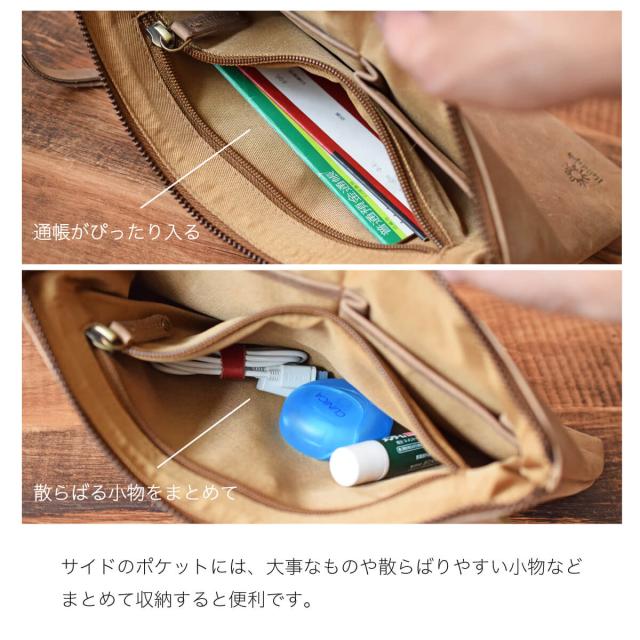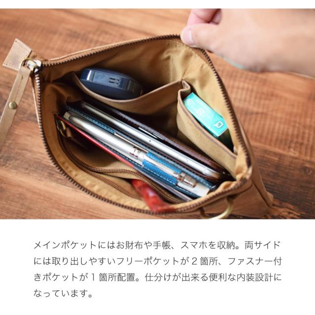 スマートに持てる小さめサイズ。使い勝手の良いレザーミニバッグ。スマホ、大きめ財布もすっぽり収納。「小ぶりでちょうど良い」サイズ感にこだわりました。マグネット式のフリーポケットが1箇所。バッグを開けずにすぐ取り出したいものを収納しておけます。メインポケットにはお財布や手帳、スマホを収納。両サイドには取り出しやすいフリーポケットが2箇所、ファスナー付きポケットが1箇所配置。仕分けができる便利な内装設計になっています。サイドのポケットには、大事なものや散らばりやすい小物などまとめて収納すると便利です。容量:1.0L