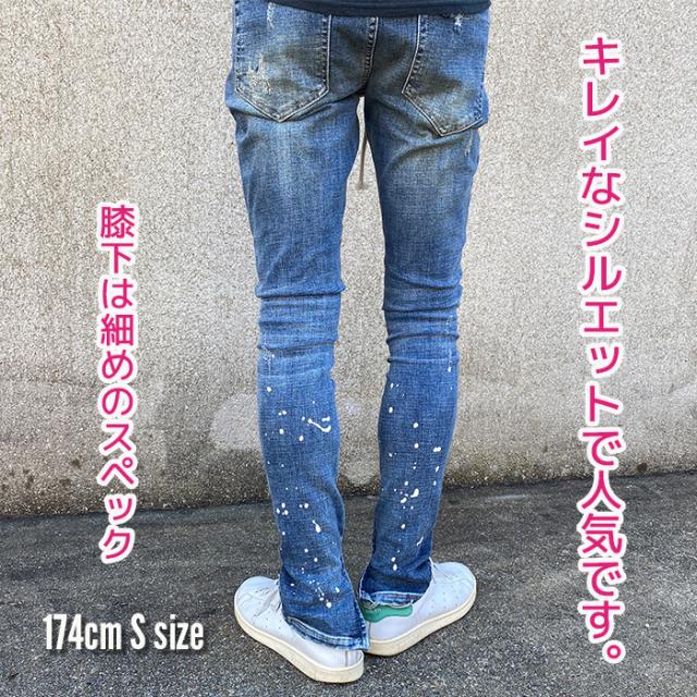ペイント デニム ジーンズ メンズ ダメージ◆クラッシュスキニーデニム◆スキニーパンツ スキニーデニム ストレッチ ブリーチ ストレッチジーンズ su03