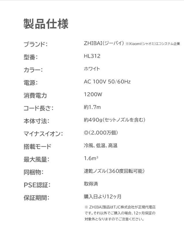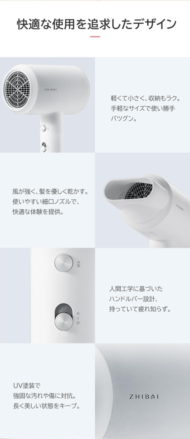 【年末年始・赤字覚悟の大特価 35%お得(15%OFF+20%ポイント還元)】 ZHIBAI HL312 大風量 ヘア ドライヤー 特典あり マイナスイオン ヘア ドライヤー 速乾 プレゼント 1年保証 国内正規代理店
