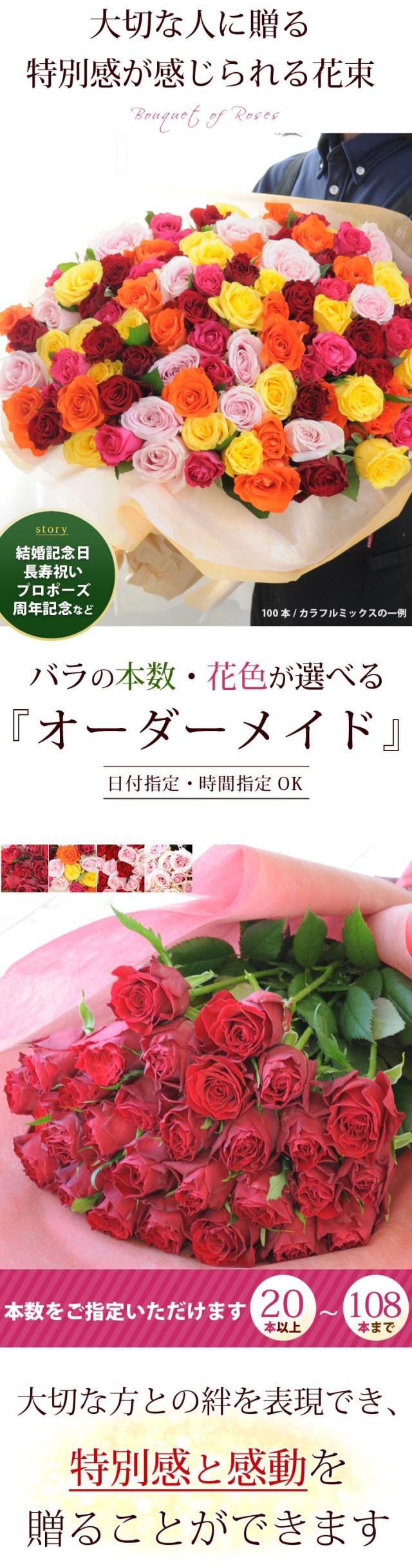 20本〜108本迄でお好きな本数でお作り致します 本数と花色が選べるオーダーメイド バラの花束 ギフト 花 生花 フラワーギフト 誕生日 プレゼント 女性 彼女 母 結婚記念日 妻 プロポーズ 告白 花 お祝い 歓迎会 花束 還暦祝い 昇進祝い 結婚祝い ローズ