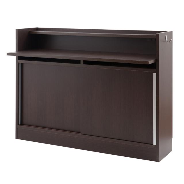 カウンター下にワークスペース カウンター下デスク 幅120 ダークブラウン 完成品 送料無料 リビング学習デスク カウンター下収納 引き戸 薄型 奥行30 国産 日本製 おしゃれ スリム テレワーク 在宅ワーク 在宅勤務