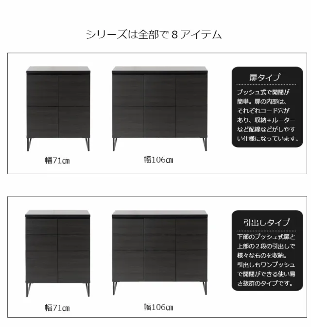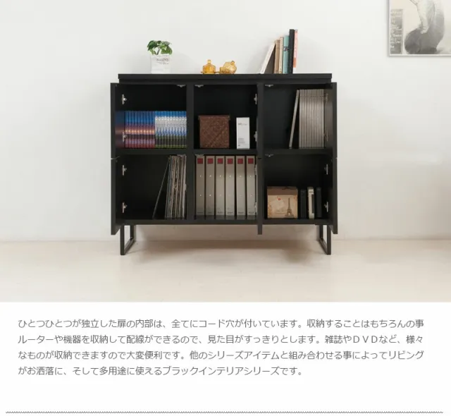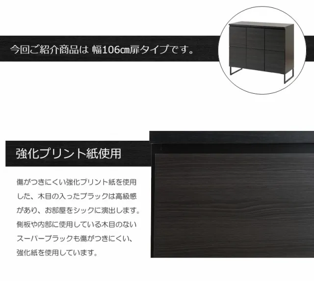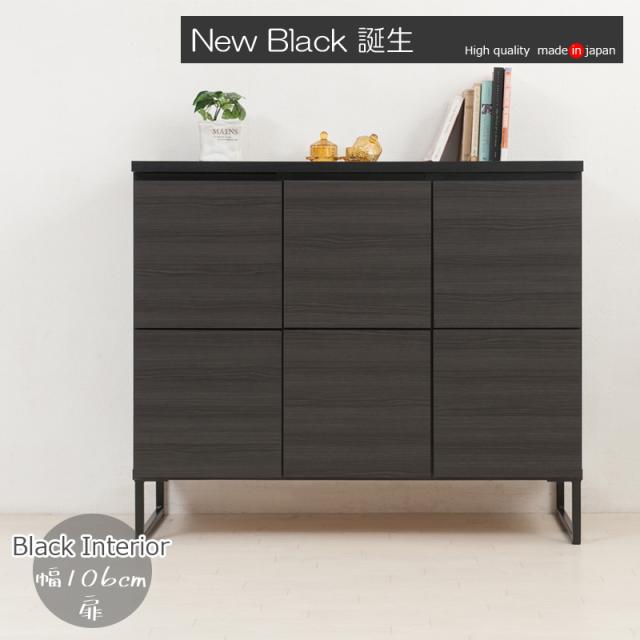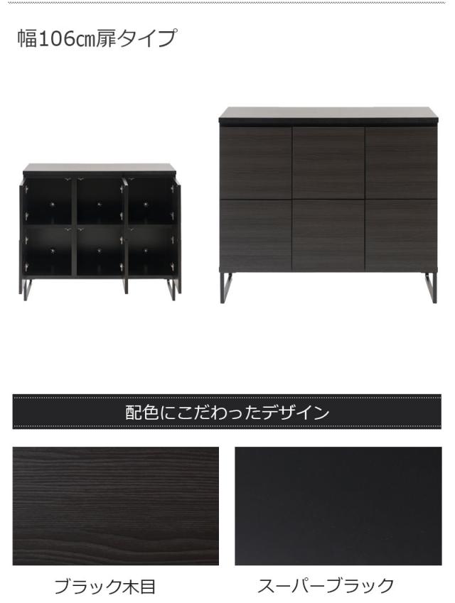 黒で締めるリビング リビングキャビネット 幅106 扉タイプ 完成品 送料無料 スクエアキャビネット 高さ90 ロータイプ リビングボード 扉付き 収納棚 ブラック 黒 おしゃれ 脚付き 国産 日本製