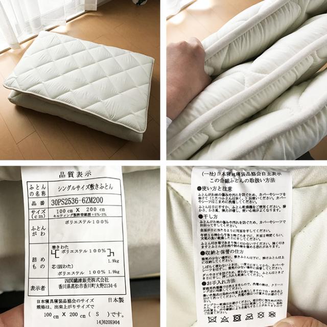 ●品名:シングルベッドにぴったり合う敷ふとん
