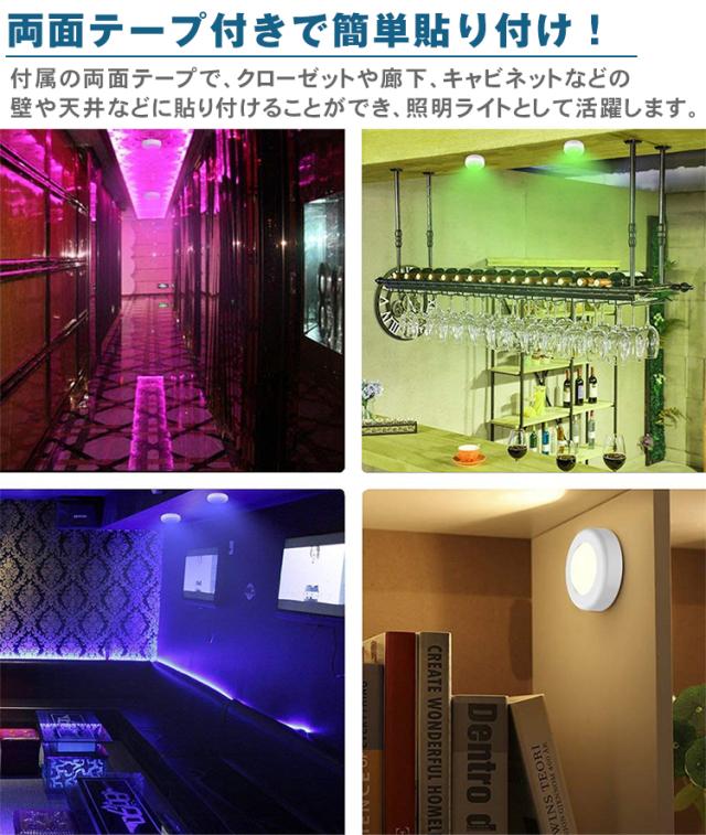 LED カラフルライト リモコン プッシュライト 13色 切り替え 10段階 調光 発光パターン切り替え 両面テープ 高輝度 電池式 照明 ナイトライト PR-13RGB