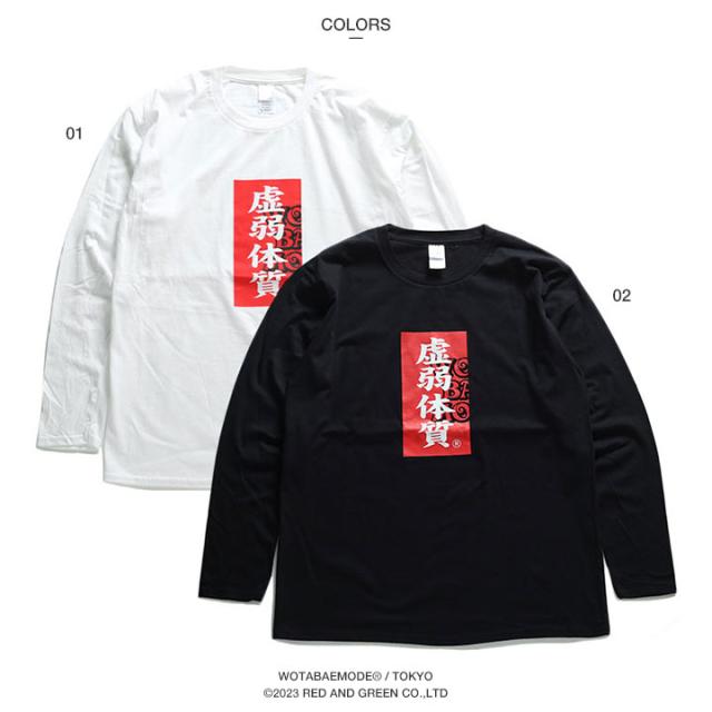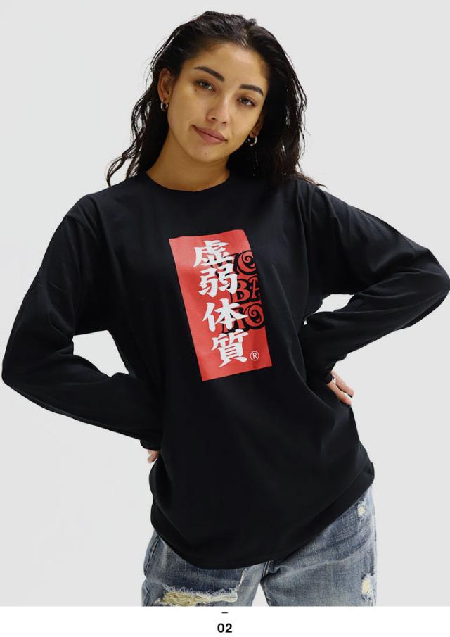 虚弱体質 公式 ロンT ストリート メンズ レディース おもしろ Tシャツ 長袖 ロンティ トップス 春秋冬用 白 黒 大きいサイズ 和柄 虚弱 ロゴ ヲタ映えモード 面白い 原宿系 外国人 インバウンド ファッション ストリート系 ブランド 服 クリスマスギフト WB-TL-LT-021