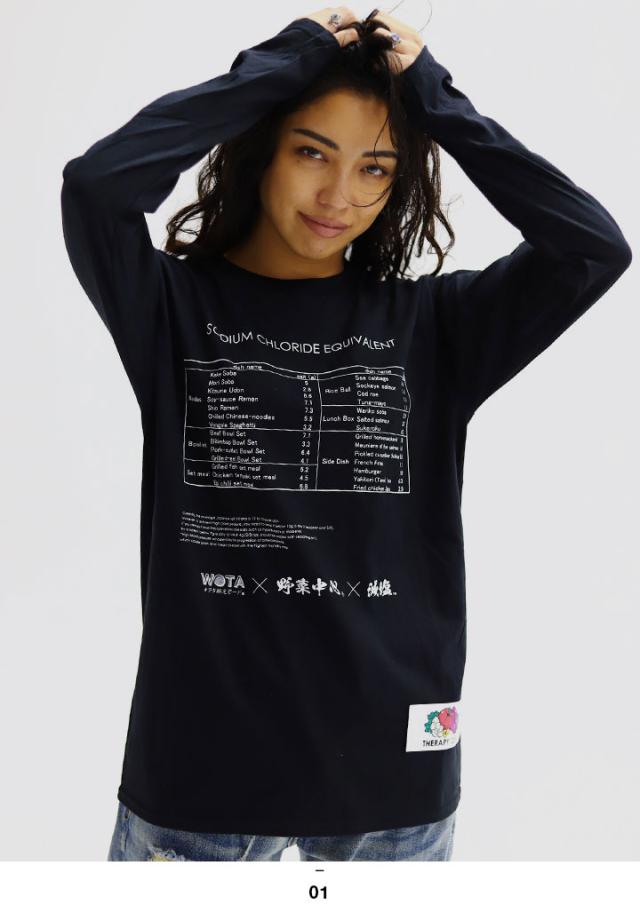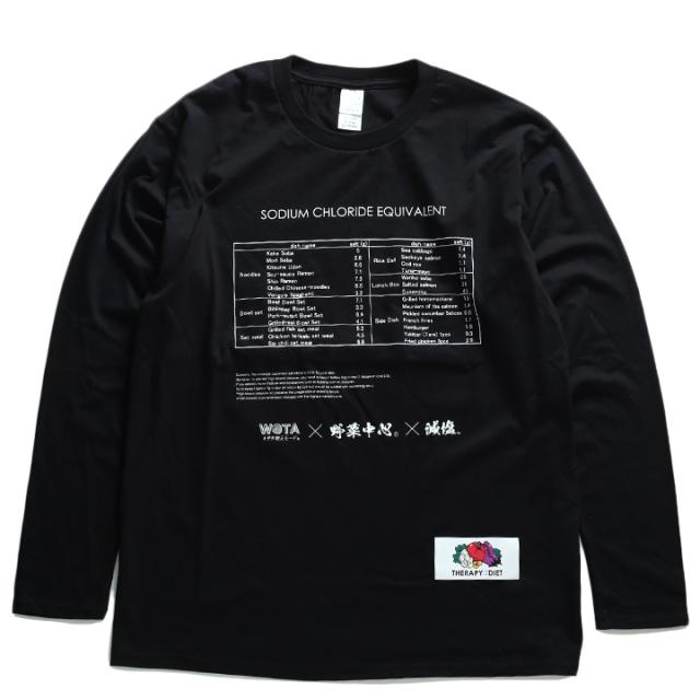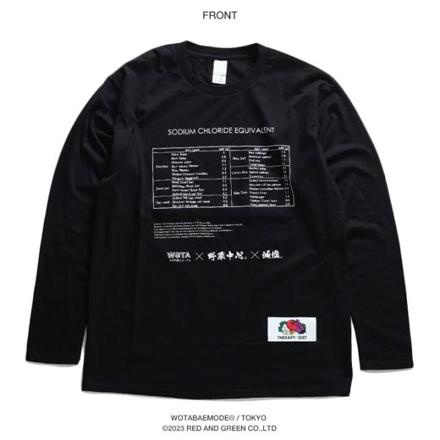 野菜中心 公式 ロンT ストリート おもしろ Tシャツ 長袖 ロンティ トップス 黒 大きいサイズ 和柄 野菜 お野菜 ロゴ 塩分早わかり表 ヲタ映えモード 面白い 原宿系 外国人 インバウンド ファッション ストリート系 ブランド 服 クリスマスギフト WB-TL-LT-020