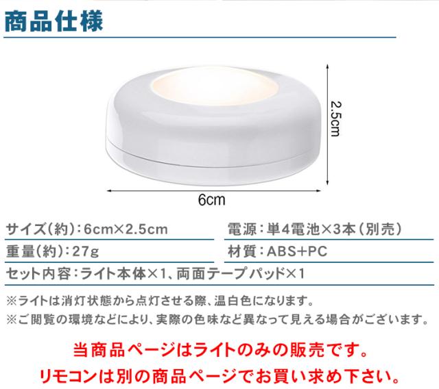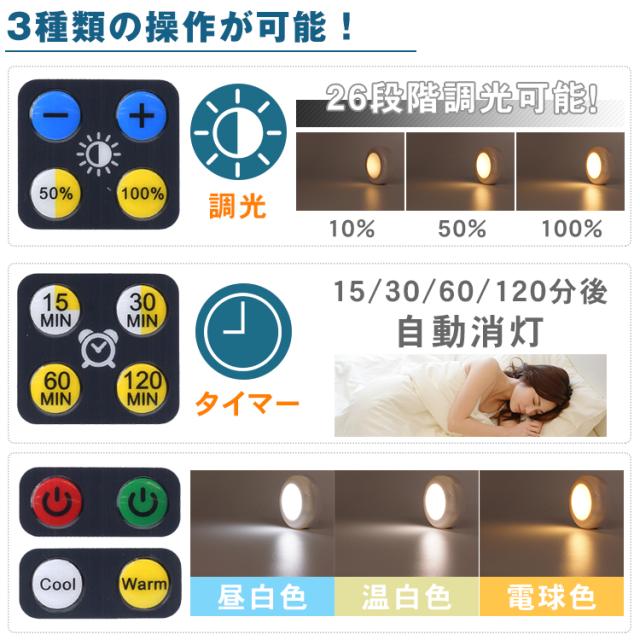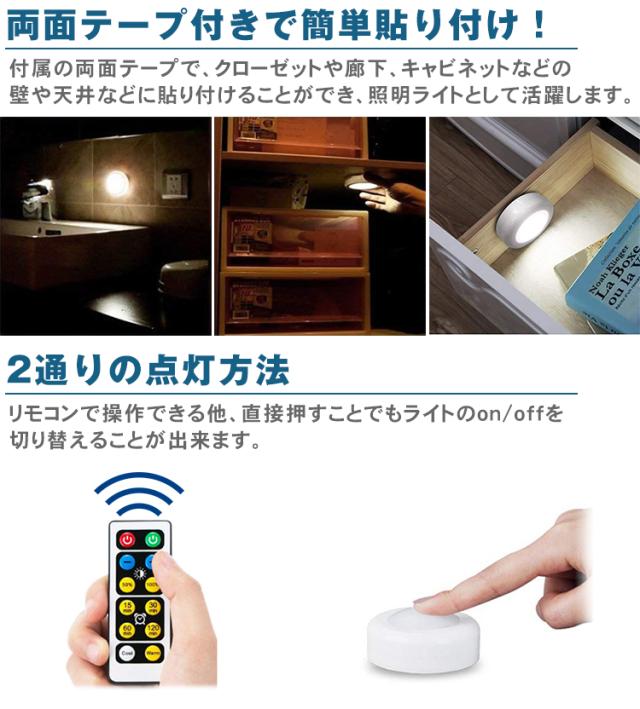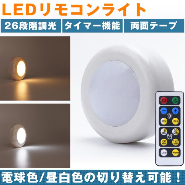 LEDライト プッシュライト リモコン 26段階 調光 昼白色 電球色 切り替え タイマー 高輝度 電池式 照明 ナイトライト 両面テープ