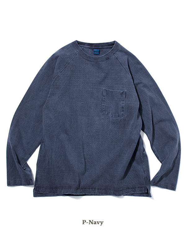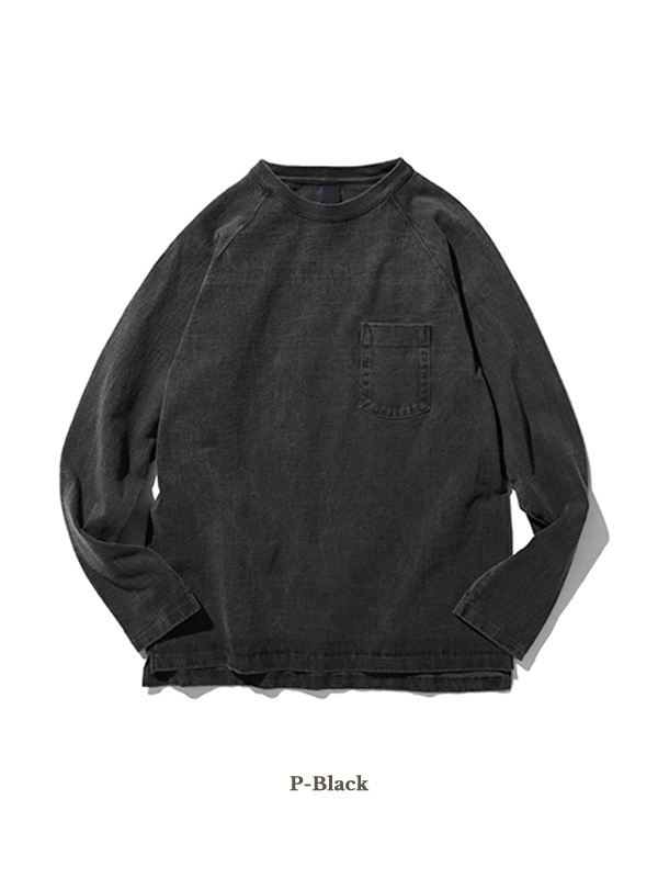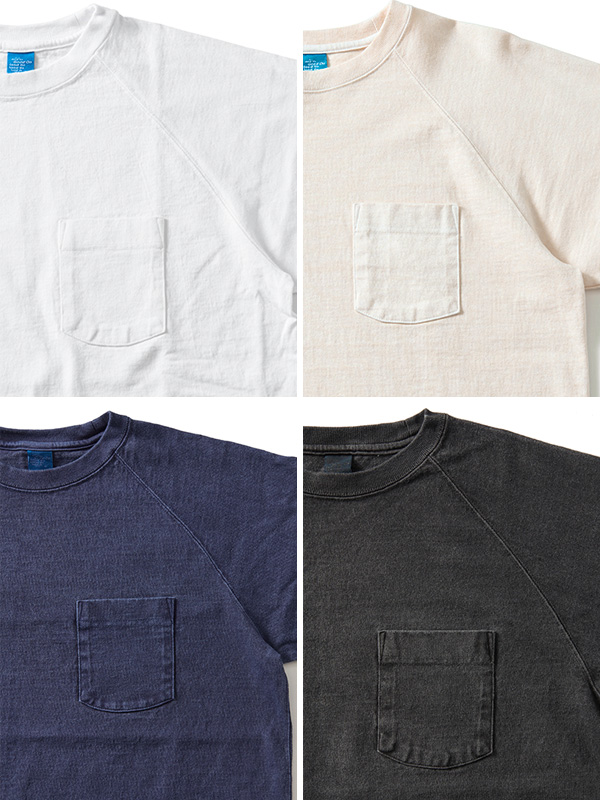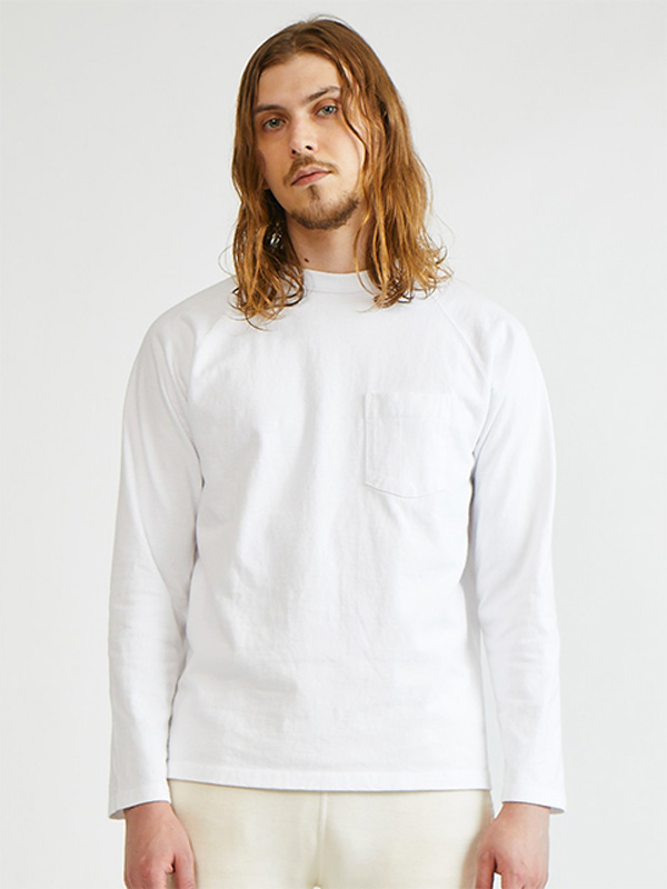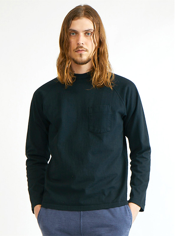 着応えのあるヘビーオンスの生地を使用したポケット付きラグランTシャツ。
