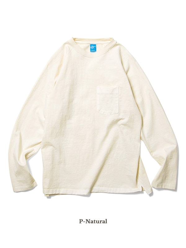 Good On HEAVY RAGLAN LS POCKET TEE グッドオン ヘビー ラグラン ロングスリーブ ポケットTシャツ 【Good On (グッドオン)】 ベーシックでシンプルだからこそ違いのわかる質と着心地。味のある色と安心の耐久性で経年変化を楽しめる特別な一枚。 肌に優しく強い高品質のアメリカ綿を使用し身体に馴染むパターン、長く着る為の強度有る縫製、後染めでの縮率を考慮し一番良い型になる様計算されたサイズスペック。 全てにおいてこだわった古き良きアメリカの名品を今に落とし込み、あの時代の「味」を復活させたGood On. グッドオンの中で最もリピート購入率の高い人気商品「S/S HEAVY RAGLAN POCKET TEE」を長袖にアレンジしました。 着応えのあるヘビーオンスの生地を使用したポケット付きラグランTシャツ。 一度着ると病み付きになる着心地の良さとシンプルかつ無骨な表情が特徴です。 発色が良く上品な仕上がりのReactive Dye(反応染め)カラーは、素材本来の柔らかく ナチュラルな風合い感を楽しむことができ、シンプルな見た目と着回しやすさが特徴。 厚手の生地特有の凹凸に色の濃淡が際立つPigment Dye(顔料染め)カラーは、 他にはない味のある表情が特徴で、洗濯の度に表面から徐々に色褪せしさらに風合いを増していくので、 長く愛用するほどに上質なビンテージ品のように印象が変わっていきます。 丈夫で長年着続けられるTシャツだけに、愛着を持って自分でビンテージの表情に育て上げていくのが醍醐味となります。 まるで薄手のスウェットのように存在感のあるTシャツ生地は、肌に触れて心地良い適度な厚みで、 良質なアメリカ綿の着心地を存分に味わうことができます。 重厚な生地を支える強固な縫製、厚みやゴワつきが気にならず動きやすいラグランスリーブ、 裾のサイドベンツとロングテールはデザインのワンポイントにもなっています。 後ろの裾が長くなっていて、両サイドにはカッティングを入れているので、 着用した際に裾が邪魔にならず、全体がもたつきません。 製品染め後に、洗濯、乾燥済みのため、最も縮んでいる状態です。 着用していくうちに詰まっている編み目が緩み、身体に馴染んでいきます。 ※製品染め商品の特性上、一点一点染め上がりのお色やサイズに若干の誤差がございますので予めご了承ください。 また、独特のユーズド感のある表情、多少のゆがみや擦れ、縫い目部分のしわ、 編み地の筋やムラなどは製品の特徴です。素材の持つ不均一感やラフ感をお楽しみください。 ※顔料染めを用いた製品には袖や身頃の脇などに白線状の色落ちが見られますが、 生産過程において必ず生じるものとなっており製品不良等ではありません。 ※ 製品染め商品のカラー名について P- = Pigment Dye(顔料染め) P-なし = Reactive Dye(反応染め)他 | ||||||||||||||||||||