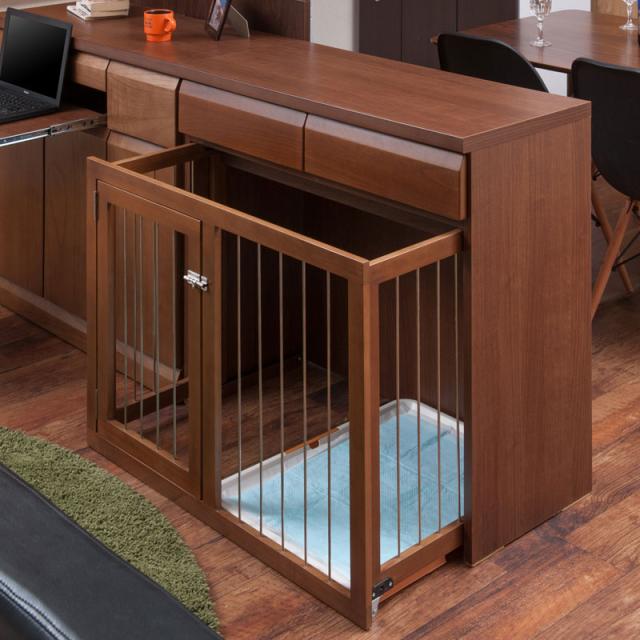 ■商品について/愛犬との過ごし易さの住空間を考えて造られたペットケージ『すむぺっとシリーズ』。天然木を前板にあしらい、インテリア性も兼ね備え、収納も付いた便利なドッグサークルです。お部屋で遊ぶときは広々と。ワンちゃんをケージに入れる時だけ前にスライドさせて。扉はロック式で人は簡単に開けることができ、中のワンちゃんは開ける事ができないワンタッチロックを採用。長く暮らすからこそ使い易くお洒落なサークルが◎他のシリーズと合わせて、リビングや寝室など、場所を選ばず、お洒落に設置できます。天然木の香りが漂う高級感のあるペットケージは、しっかりとした造りで使いやすい仕様になっています。
