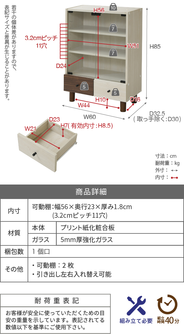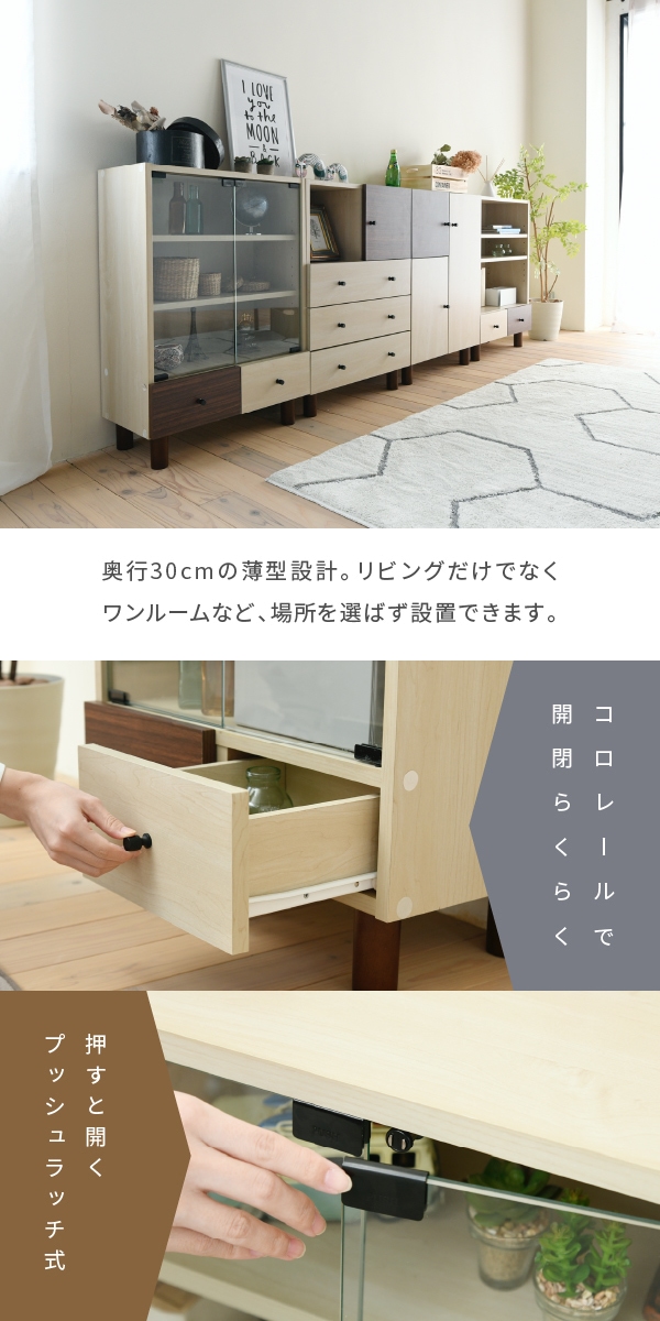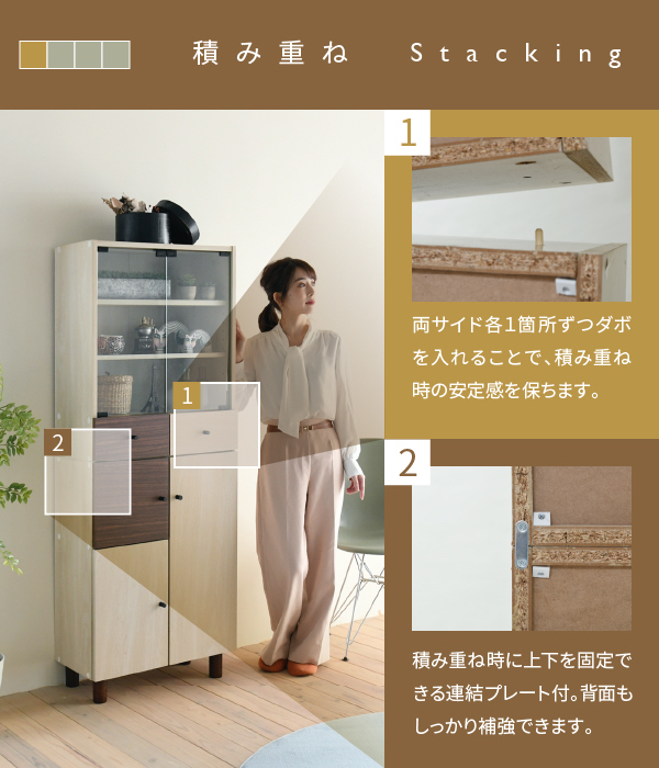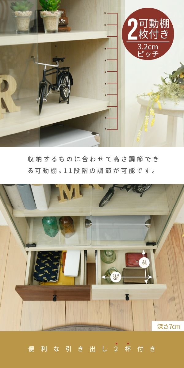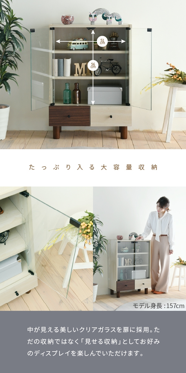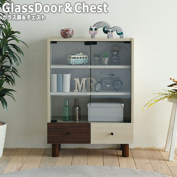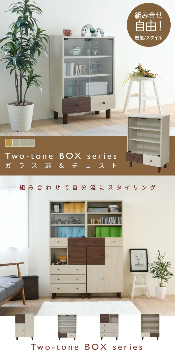 TWO TONE BOX トゥートーンボックス ガラス扉&チェスト (チェスト リビング収納 ディスプレイ ガラス扉 ラック カントリー 北欧 ブラウン ナチュラル 壁面収納 ツートン おしゃれ)