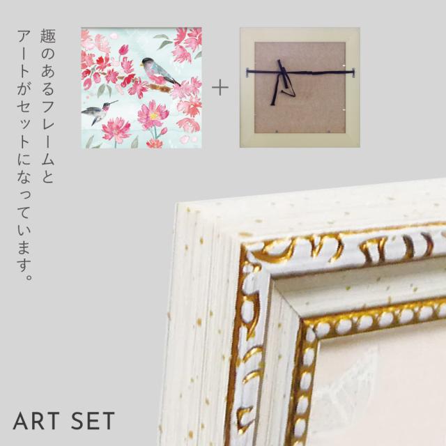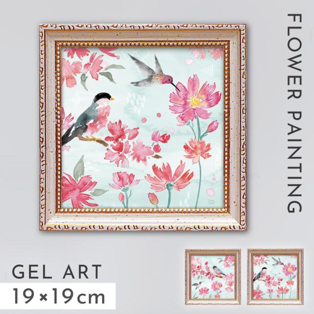 本格的アートをロープライスでご自宅に。手軽に楽しめる小型ゲルアート。お部屋の雰囲気が爽やかで明るい印象になる、お花と小鳥の愛らしいアート。優しいタッチはどんなインテリアにも合わせやすく、気軽にアートを取り入れることができます。